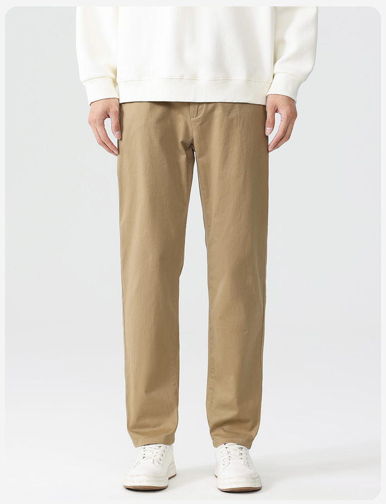 休日のリラックススタイルにはもちろん、カジュアルなオフィスシーンにも対応できる汎用性の高いコットンパンツです。