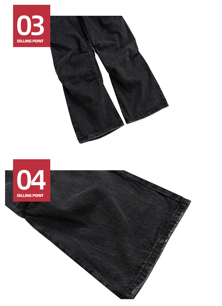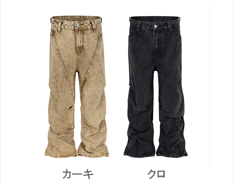 裾のダメージ加工がアクセントになり、カジュアルからストリートまで幅広く活躍。