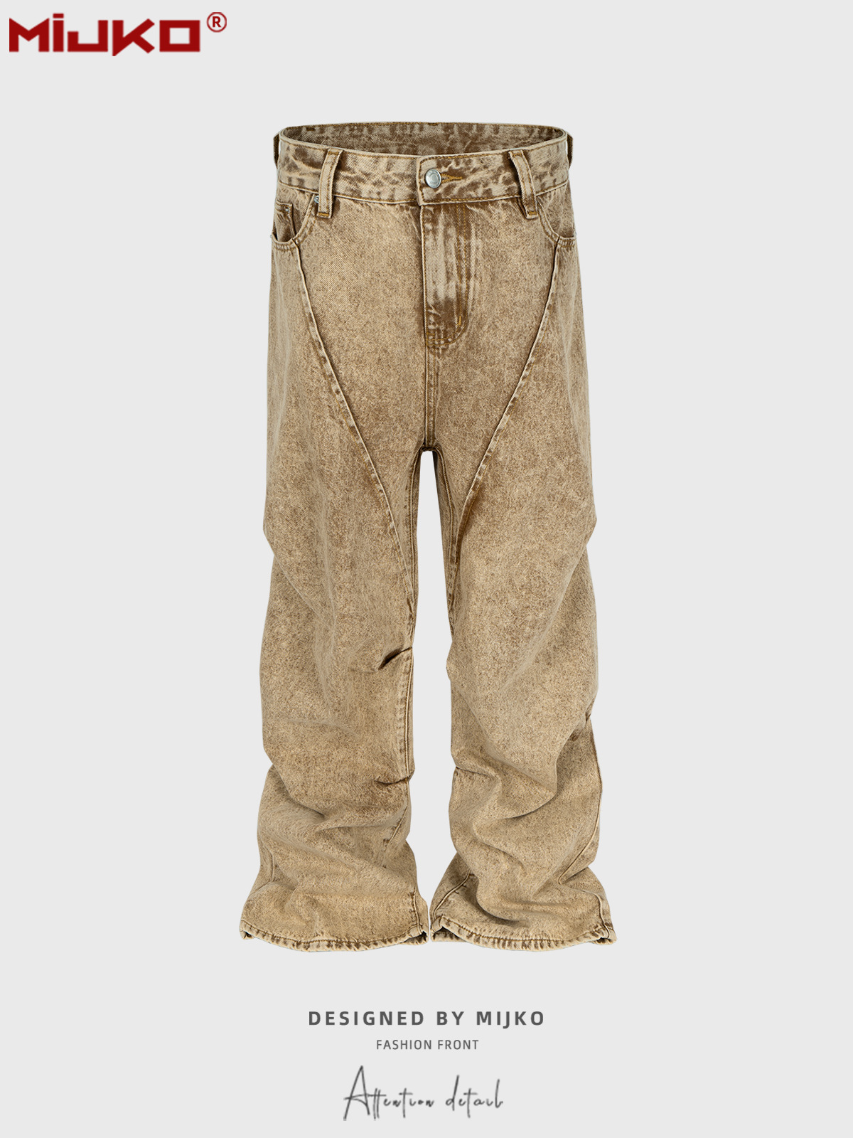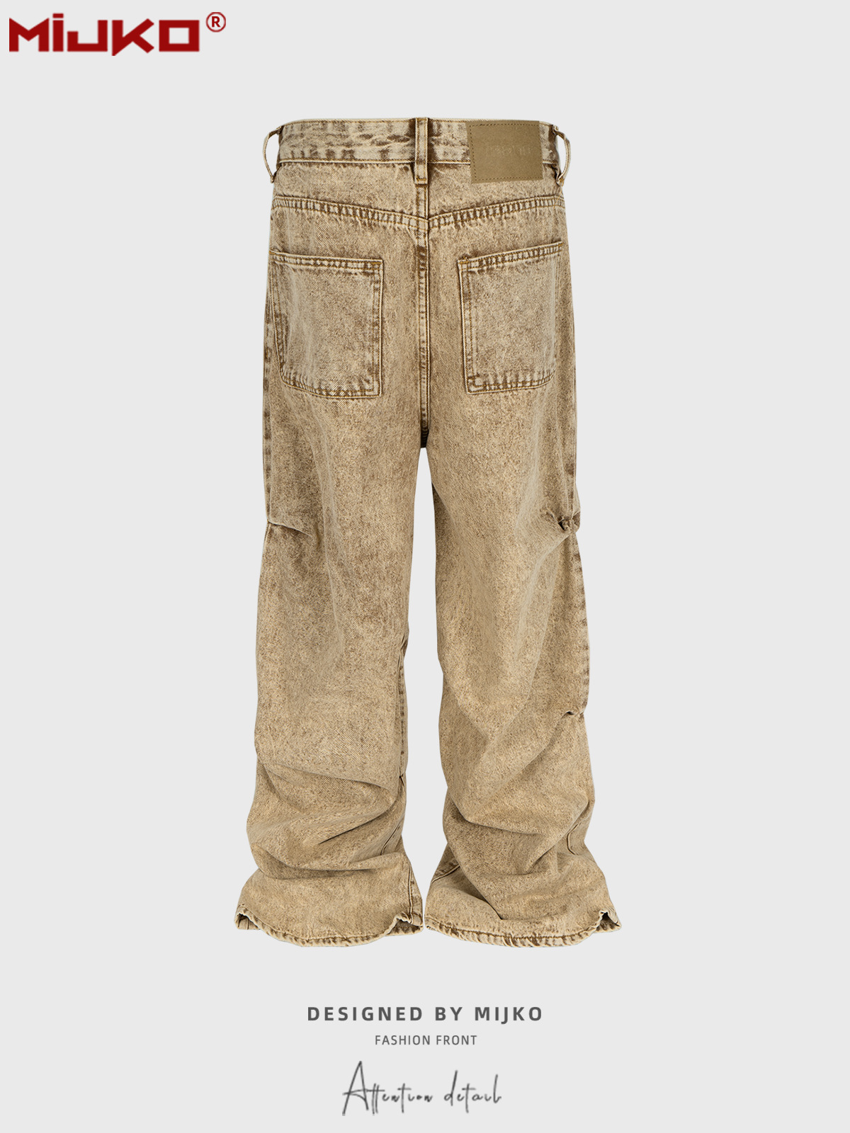 ヴィンテージ加工が施されたベージュカラーのデニムパンツ。